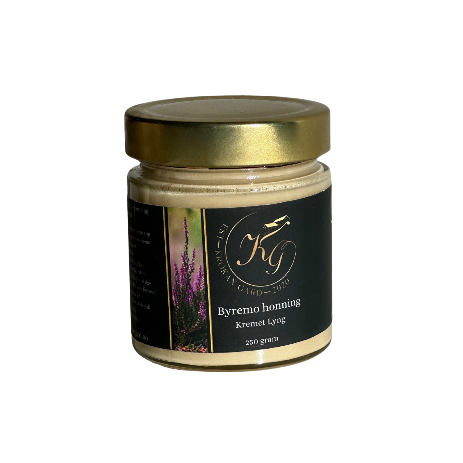 Kremet økologisk lynghonning fra Krokan gard – håndlaget, ren og full av naturlig smak. Perfekt til te, glaze og baking.